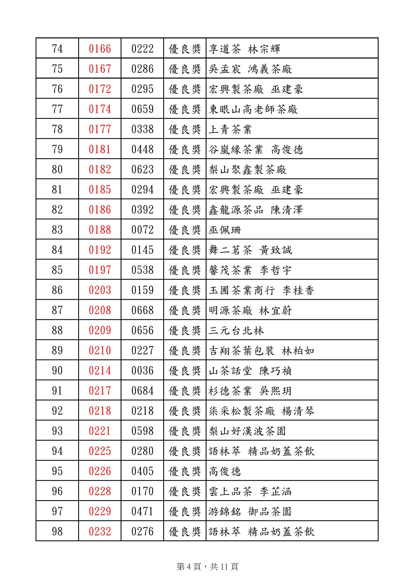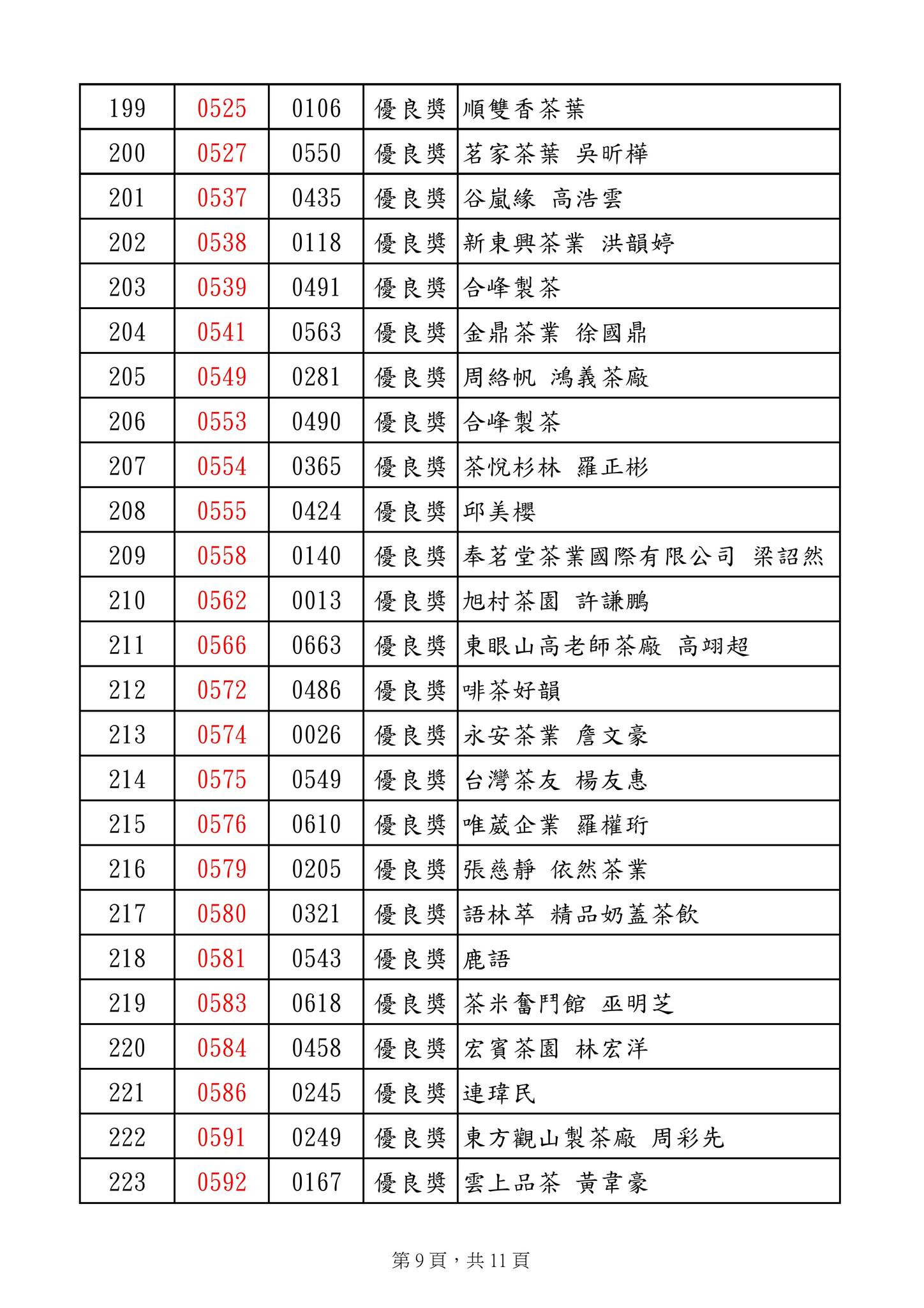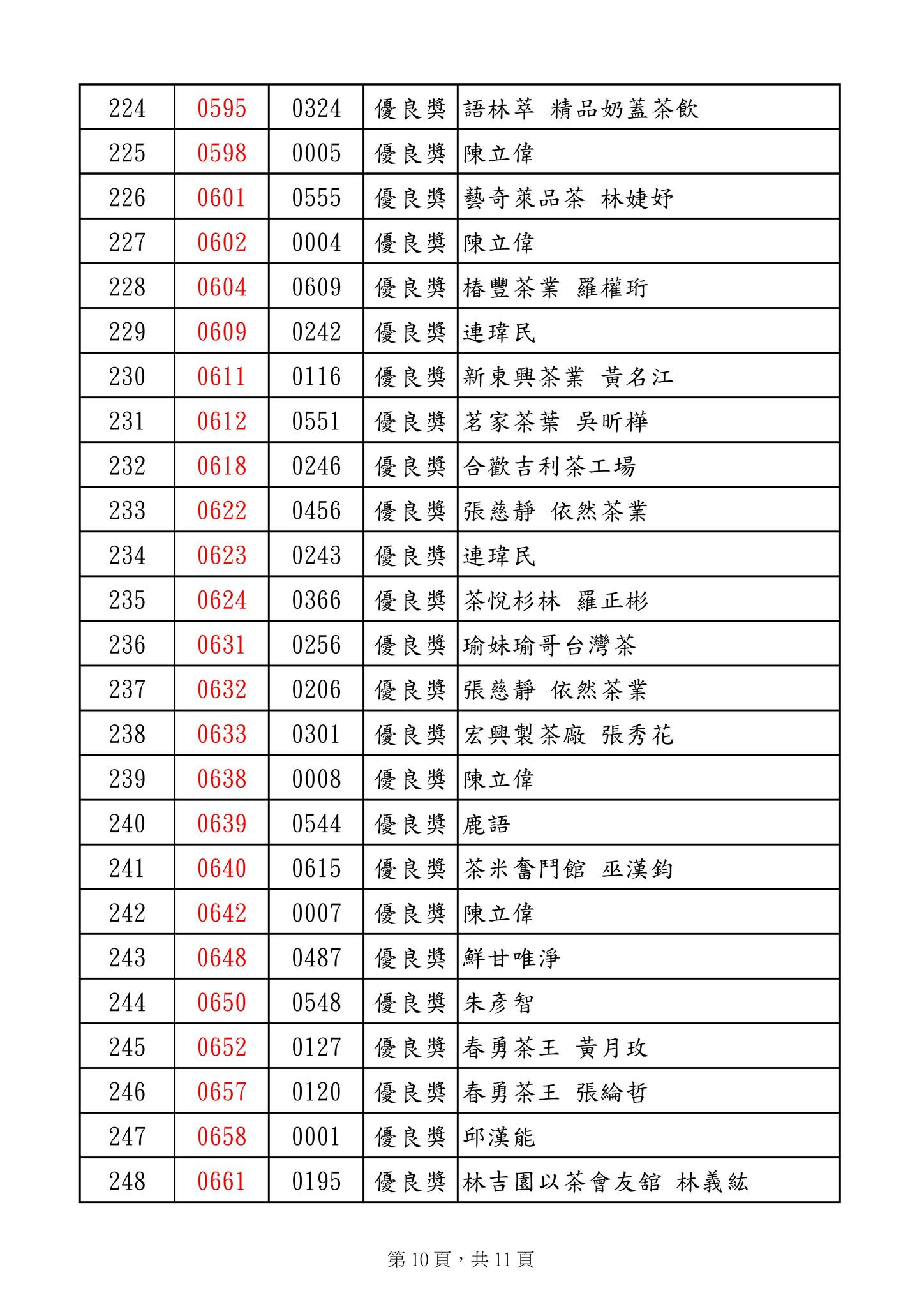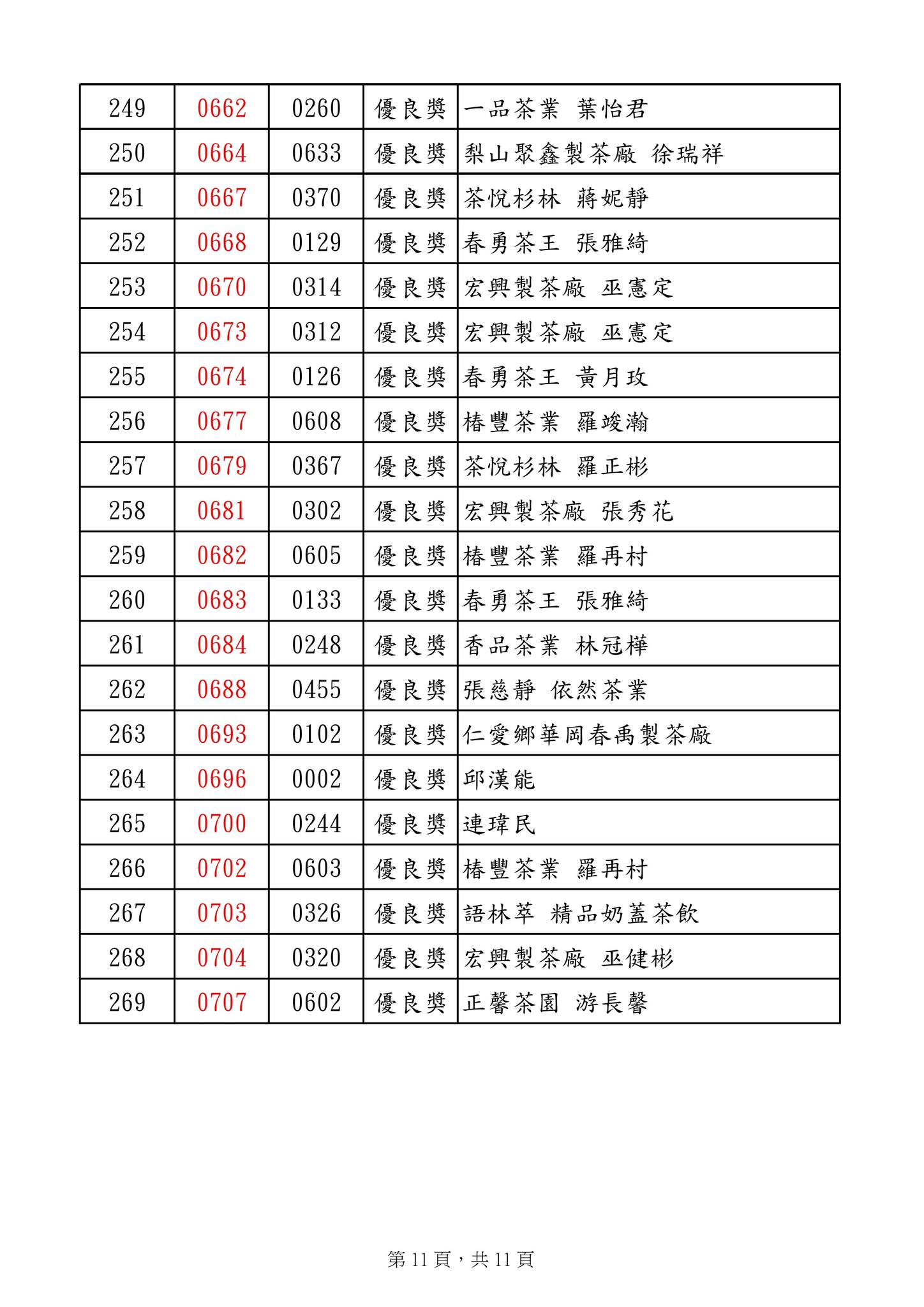 優良獎 明源茶廠 陳明朗 等269名