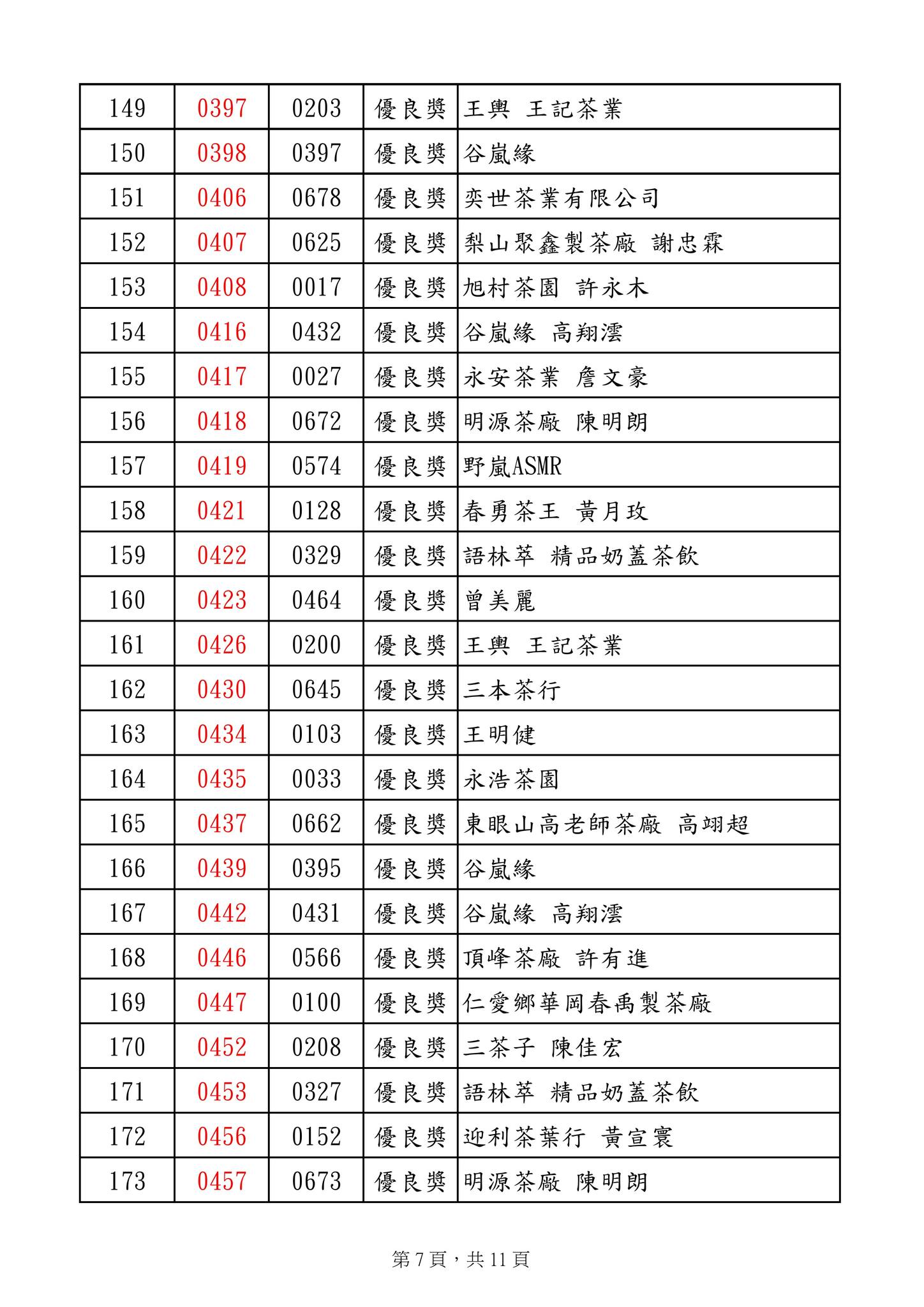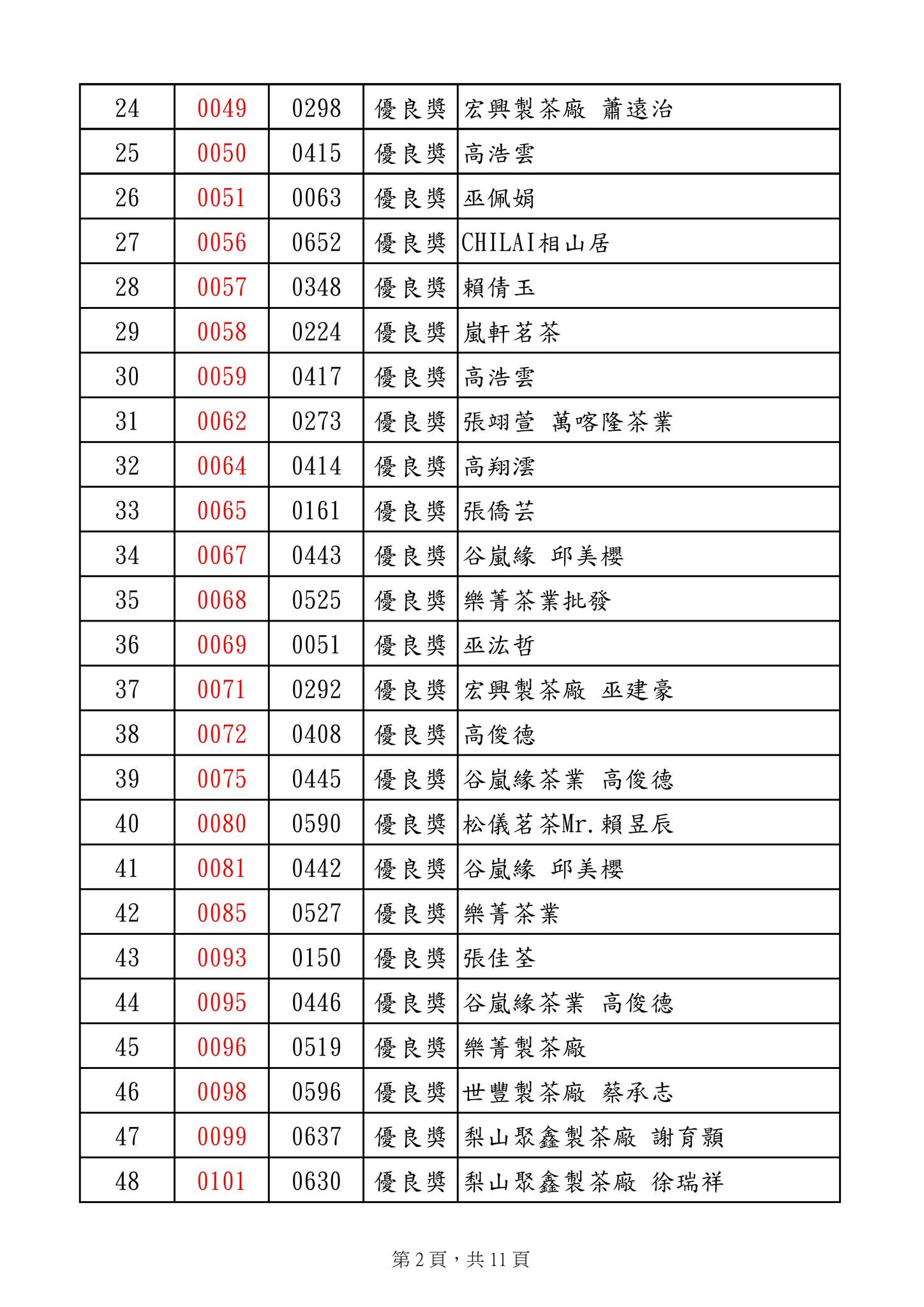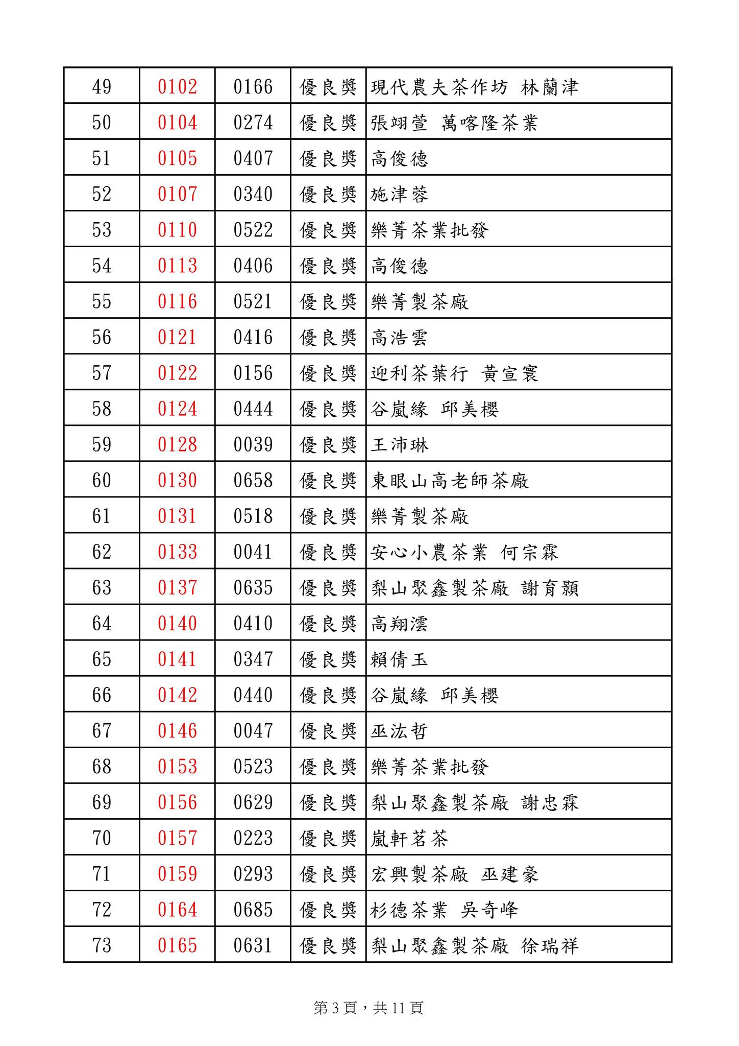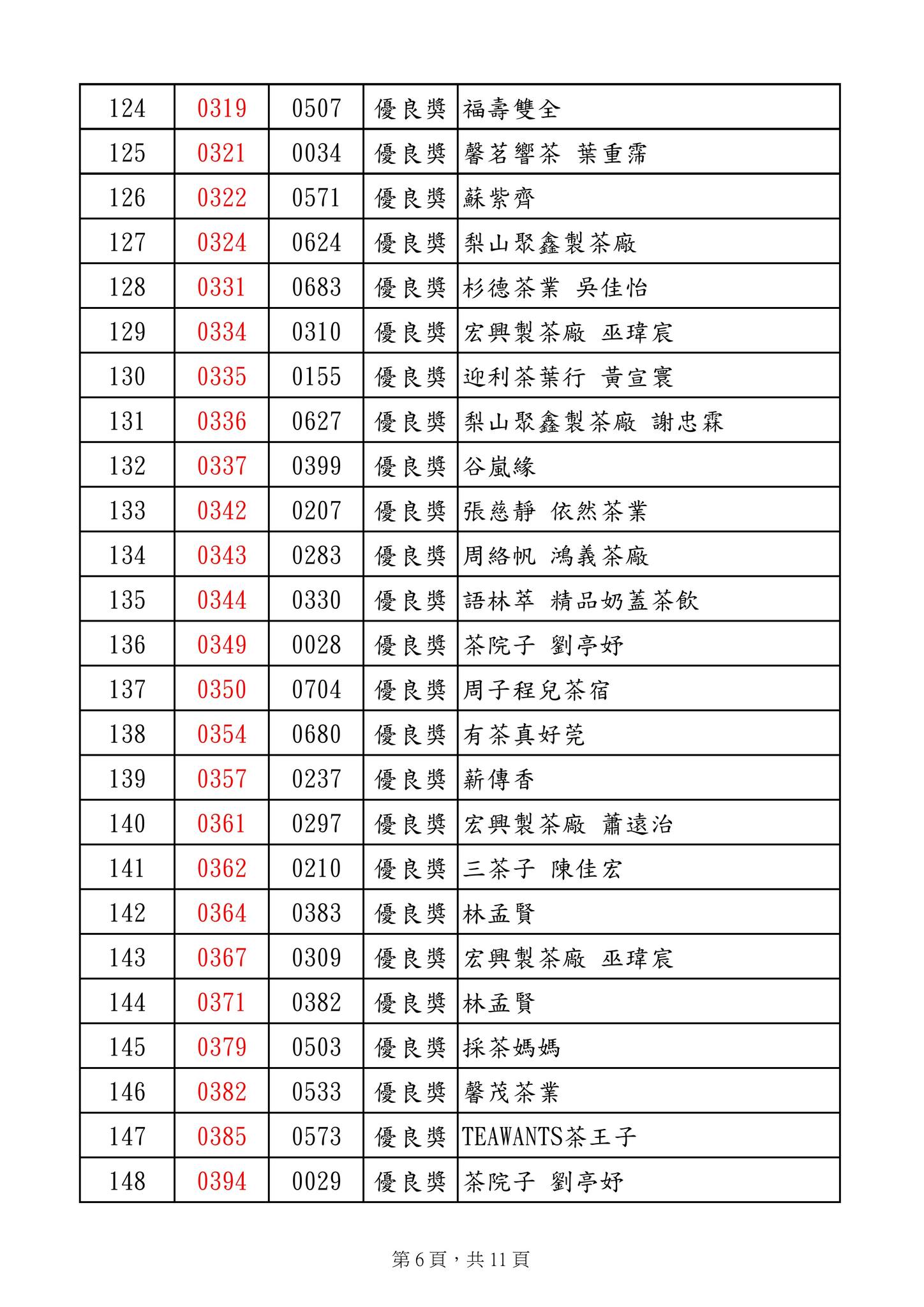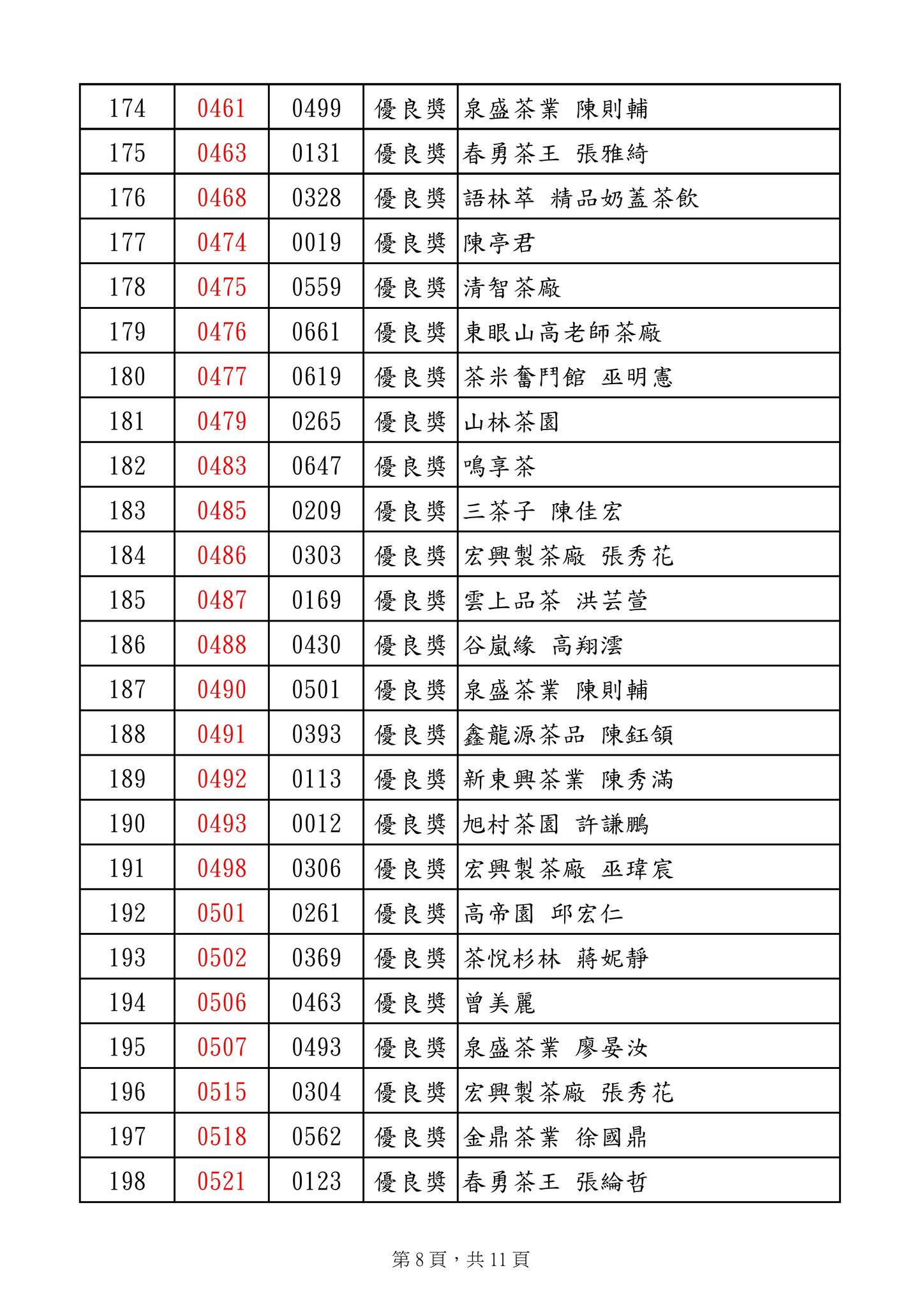 優良獎 明源茶廠 陳明朗 等269名
